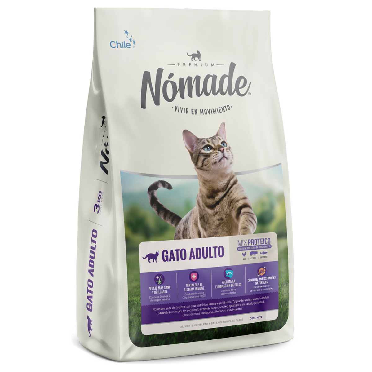 Nómade es un alimento para gatos adultos desarrollado por expertos en nutrición animal.